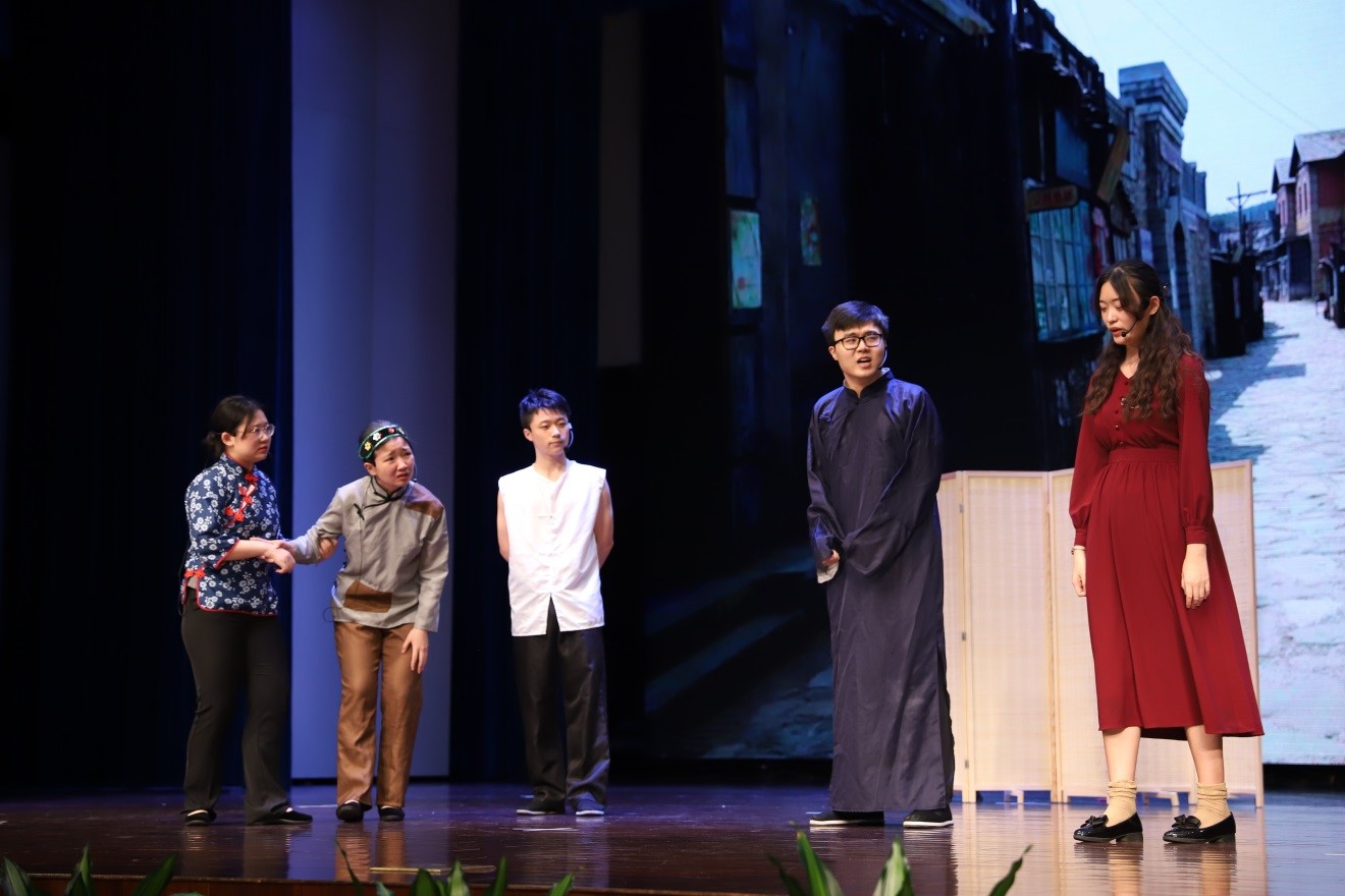 最后登场表演的是来自大一公共关系与广告专业的绝圣弃智学社,他们的作品《山雨欲来风满楼》再现了中国共产党波澜壮阔的建党历程,陈独秀、李大钊、毛泽东等密切合作,坚持不懈地开展马克思主义宣传及群众工作,最终克服种种困难险阻成立了中国共产党。星星之火,可以燎原,回顾一百年前的这段历史,依然令人心潮澎湃。评委王小勤女士表示,面对如此精彩的作品,任何点评都将会是苍白的,而今年恰逢是五四运动一百周年,同学们生动的演绎让大家深刻地感受到,中国特色社会主义道路依然是最正确的选择,是历史的选择、人民的选择,同学们对建党历程的演绎充分地体现了习近平主席所说的“四个自信”。最后王小勤女士更期盼UIC能在以后继续用自己独特的方式去展示、传承优秀的中华文化。