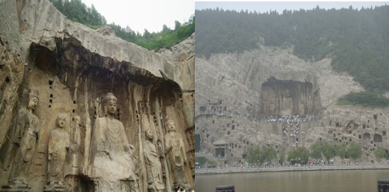 龙门石窟之美名自不必说,故每一个佛窟前都挤满了游客,大家只能在人流中缓缓趋进。然愈是拥挤,愈须用心观看,否则便白来一趟。每尊佛之形态不一,或婀娜或阳刚,衣饰筋骨,皆纤毫必现。台湾的杜洁祥教授介绍说,所谓“千佛一面”,要分辨佛的身份,看面相是不行的,要看手印。例如佛的手掌向上,便是“接引众生”之意。可惜的是,龙门石窟之佛像亦多有毁损,尤其“三武灭佛”之时佛像灾劫尤为严重。