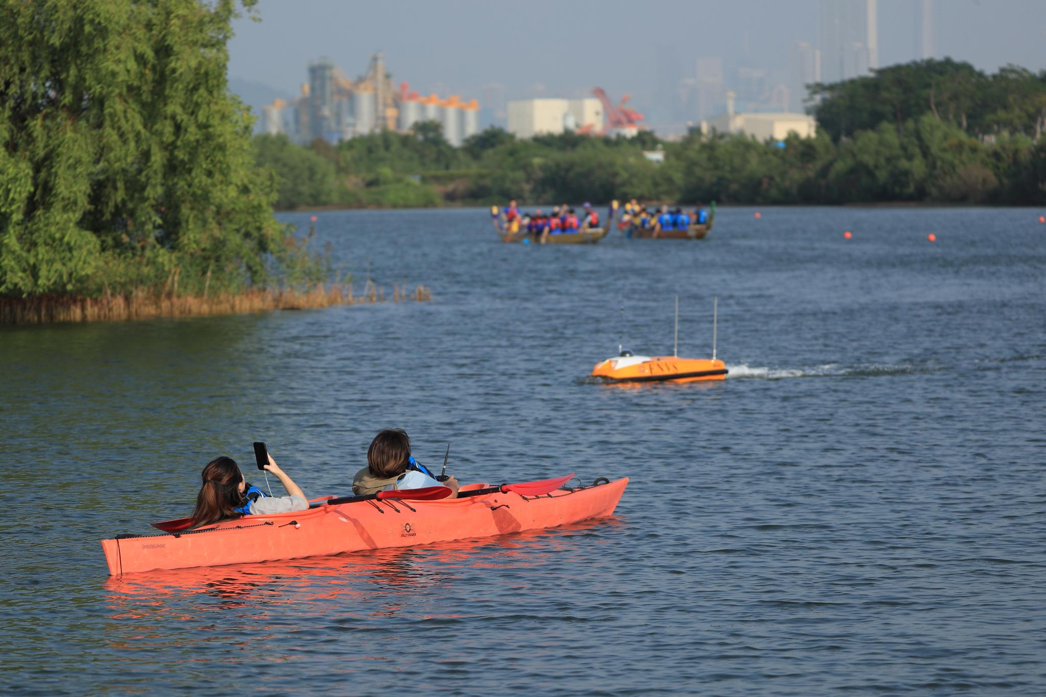 做毕业项目期间,邹沛燕和同学遥控无人船对横琴湿地公园进行水质监测和采样